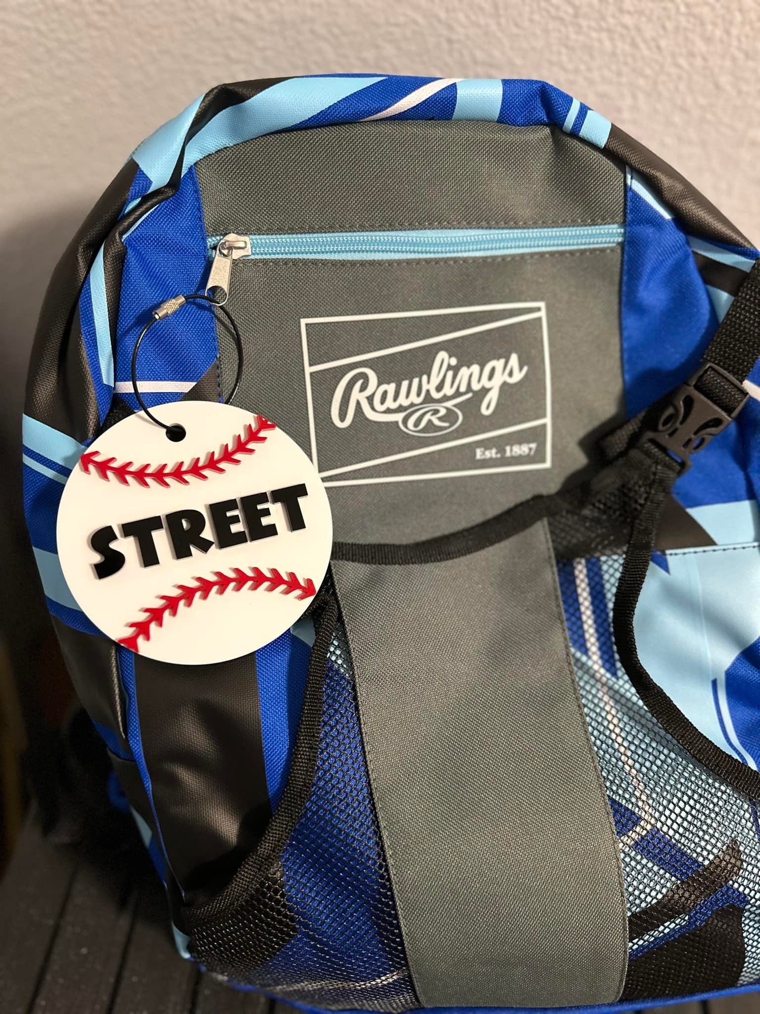 Introducing our custom-designed 4" Baseball Bag Tag crafted with durability and style in mind. Perfectly tailored for T-ball, softball, and Little League enthusiasts, this bag tag is the ultimate accessory to keep your gear organized and easily identifiable in the dugout.Crafted from high-quality acrylic, this tag boasts resilience against wear and tear, ensuring it withstands the rigors of the game season after season. Its compact 4-inch size offers the ideal balance between visibility and convenience, effortlessly attaching to any sports bag or equipment.What sets this bag tag apart is its personalization feature. Each tag is customized with the player's name, ensuring no mix-ups or confusion in the dugout. Say goodbye to the hassle of searching through a sea of bags to find your gear – with our personalized bag tag, your equipment stands out effortlessly.Whether you're a dedicated player, coach, or supportive parent, this Baseball Bag Tag is a must-have addition to your game-day essentials. Make a statement with your gear and streamline your game-day routine with this practical and stylish accessory.
