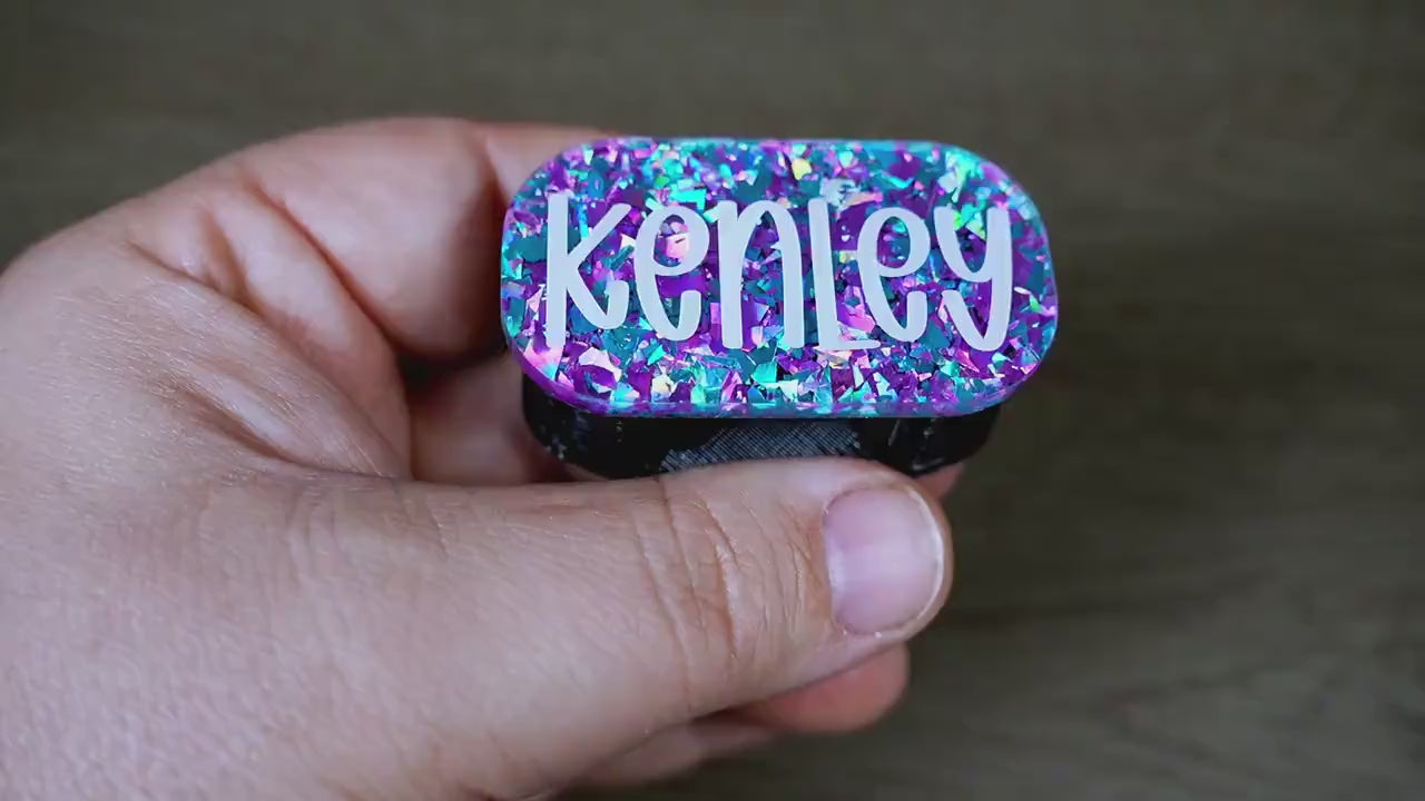NOTE: Please choose the adhesion type. Glue will lay flat against the tag holder, hook-and-loop will be slightly more raised but you can reposition it. We use very high quality hook-and-loop adhesive. If you wish to be able to change the orientation of your name plate, pick hook and loop but know that it will be slightly raised off of the surface!