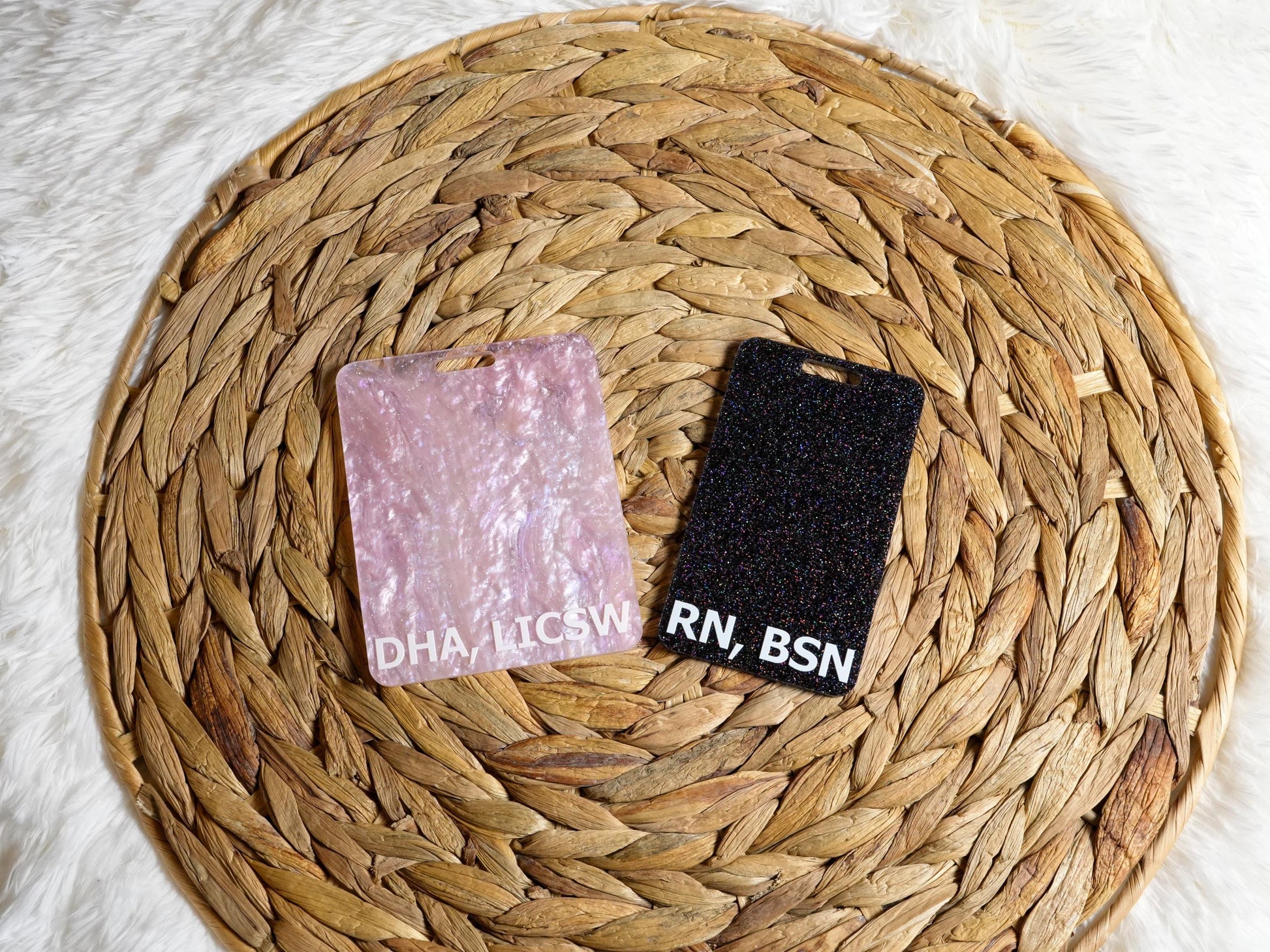 Looking to make your ID badge stand out from the crowd? Our custom acrylic badge backers are a fun and stylish way to show off your name, title, or credentials—perfect for nurses, teachers, and anyone who loves a little flair at work.