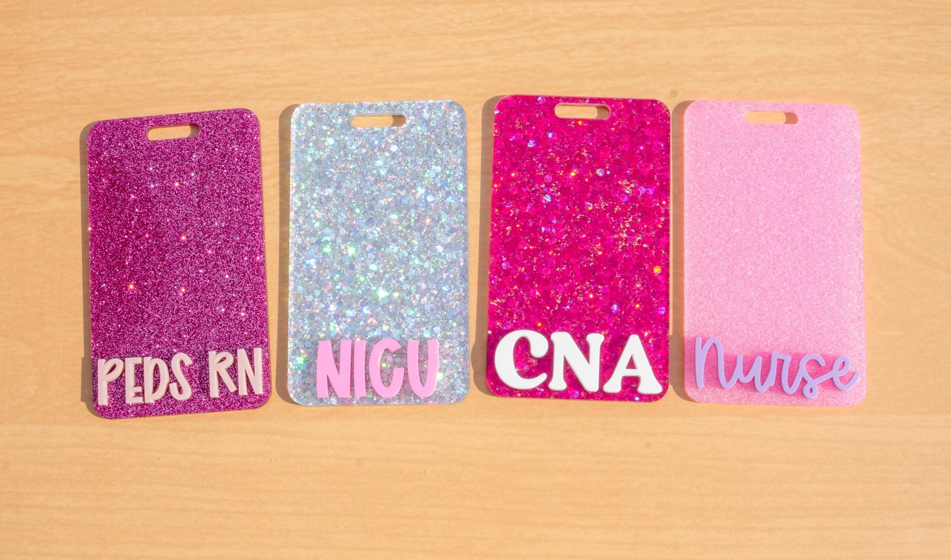 Registered Nurse Badge Buddy – Glitter Acrylic RN Badge Backer | Personalized Nurse ID Tag | Nurse Gift for Badge Reel, Nurse Graduation