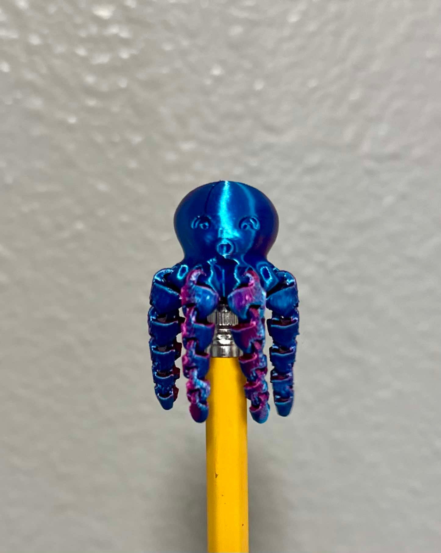 Description: Dive into the depths of the ocean with our delightful 3D-printed Octopus Pencil Topper! Crafted with precision and care, this adorable cephalopod is the perfect addition to your writing arsenal. Whether you’re jotting down notes or sketching out ideas, our octopus friend will cling to your pencil, inspiring creativity with its playful tentacles.